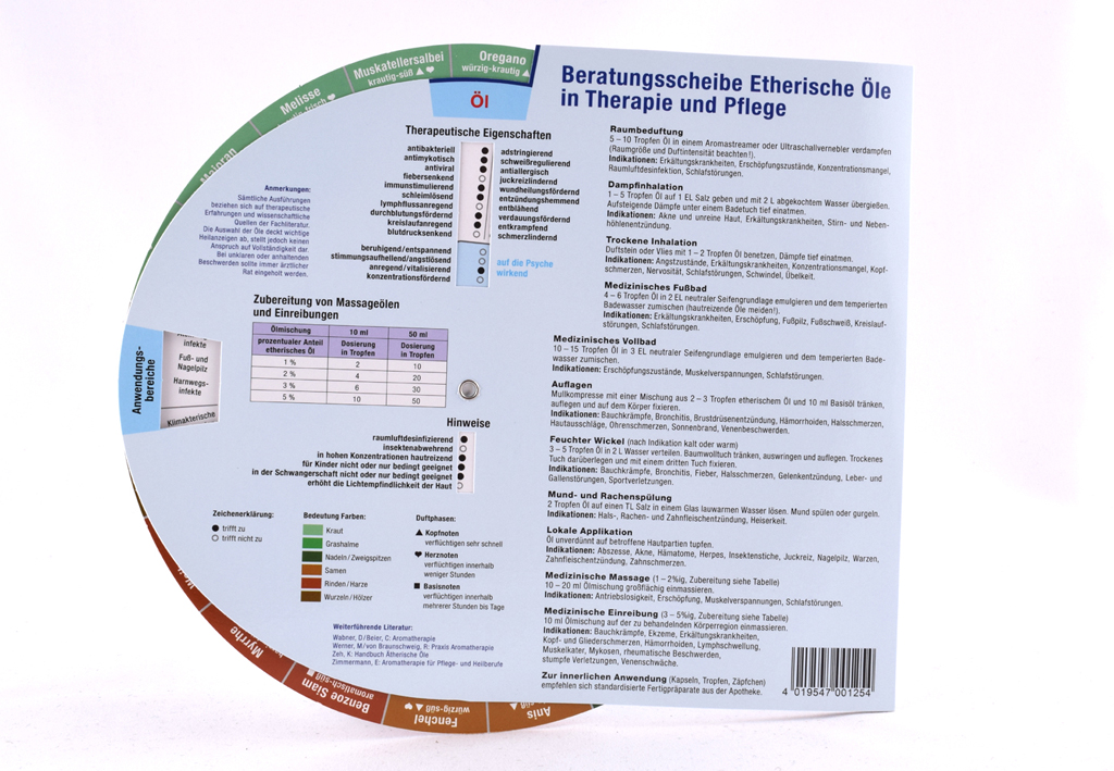 Beratungsscheibe für ätherische Öle in Therapie und Pflege
