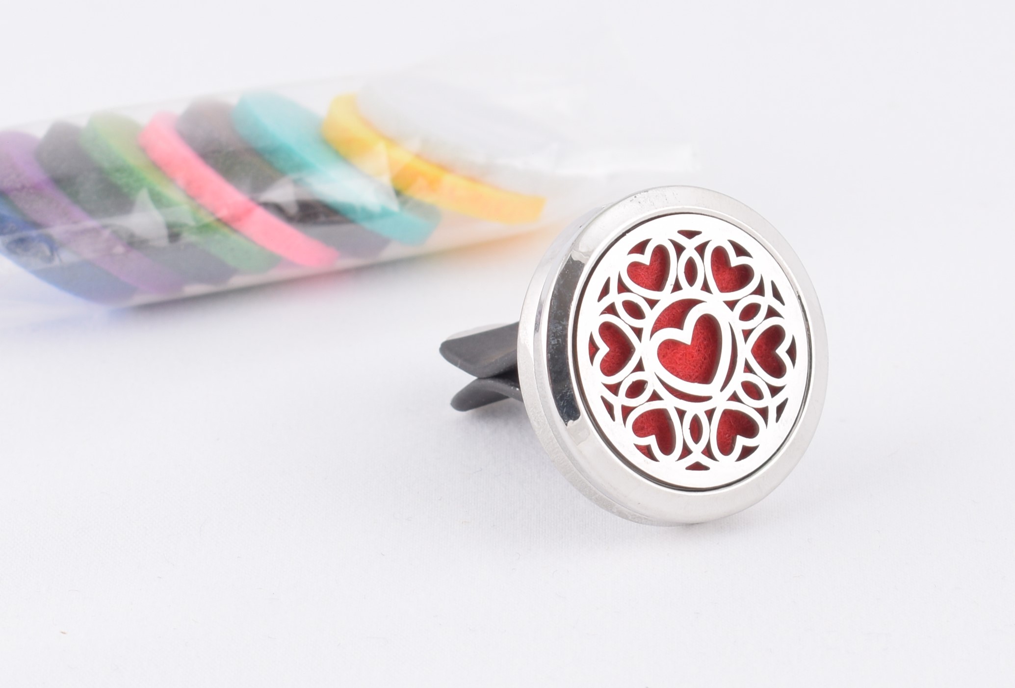 Einfach an die Lüftungsklappe stecken, einige Tropfen hochwertiges ätherisches Öl auf das Fliespad tröpfeln und schon duftet ihr Auto wunderbar.