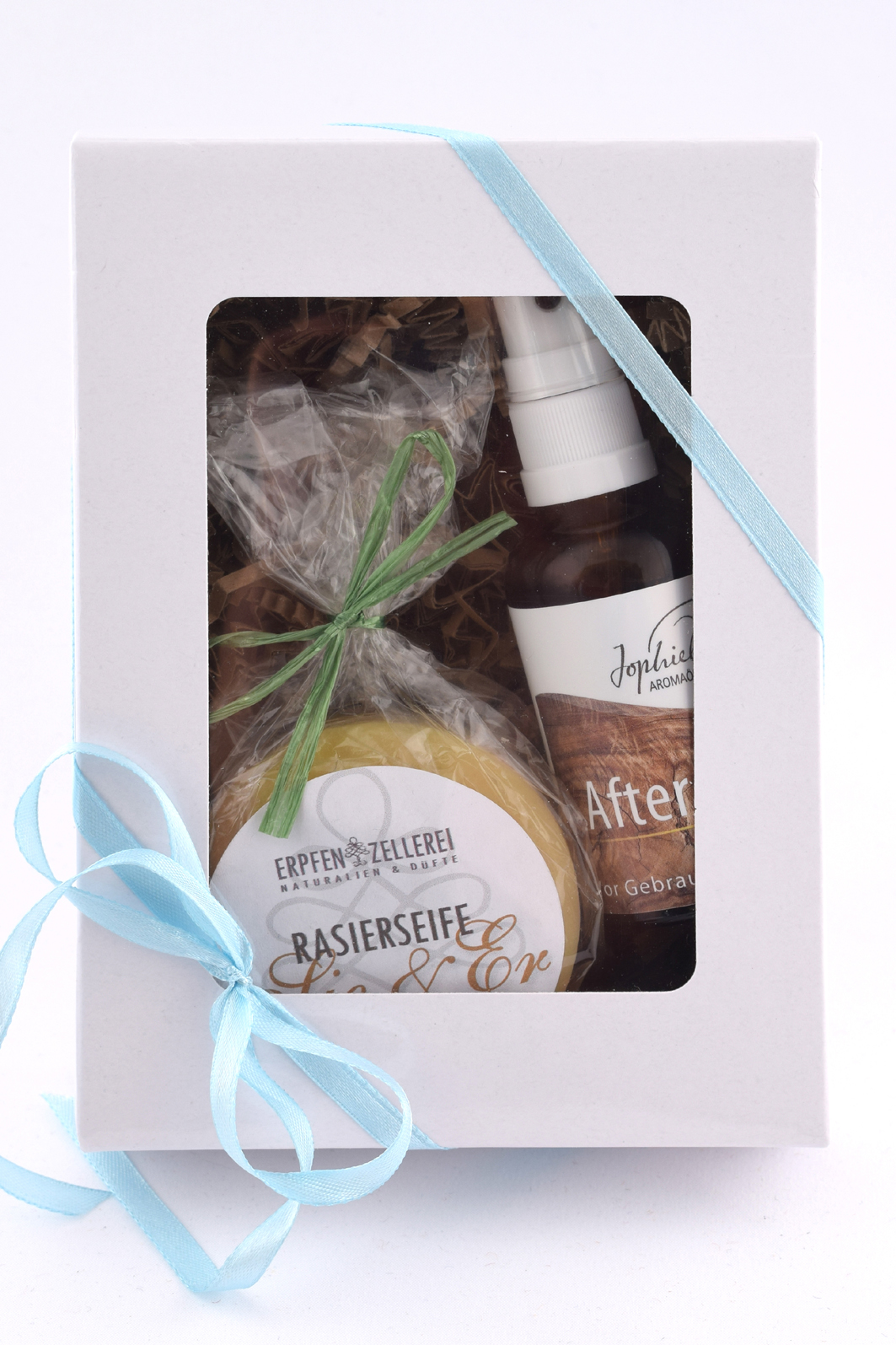In diesem zweiteiligen Geschenkset sind eine Ziegenmilch-Rasierseife & ein After Shave als Set im attraktiven Geschenkkarton mit Sichtfenster verpackt.