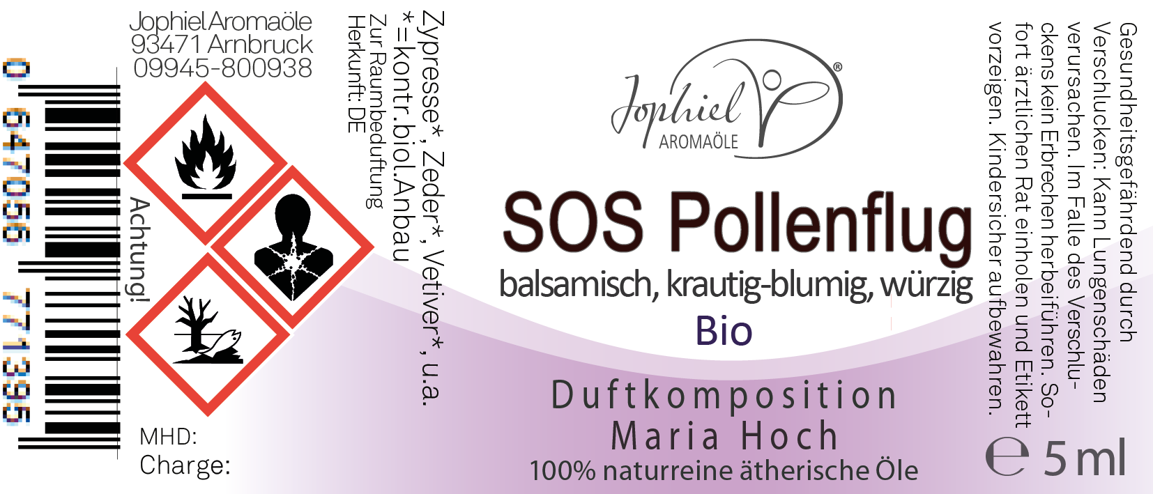 Die Duftkomposition "SOS Pollenflug" (Bio/5 ml) ist mit ätherischer Zeder und Zypresse perfekt, um gelassen in die Pollen-Saison zu starten. Eine tolle Kombination, um lästigen Allergien vorzubeugen.