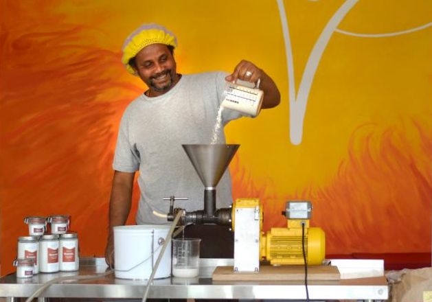 Unser Kokosöl wird bei uns im Hause Jophiel in liebevoller Handarbeit von unserem brasilianischen Mitarbeiter kaltgepresst.
