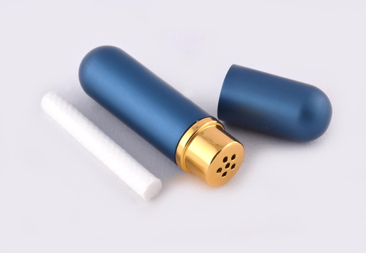 Der Stift besteht aus einem herausnehmbaren Glasbehälter für das Duftvlies und einer schicken Alu-Außenhülle in Nachtblau.