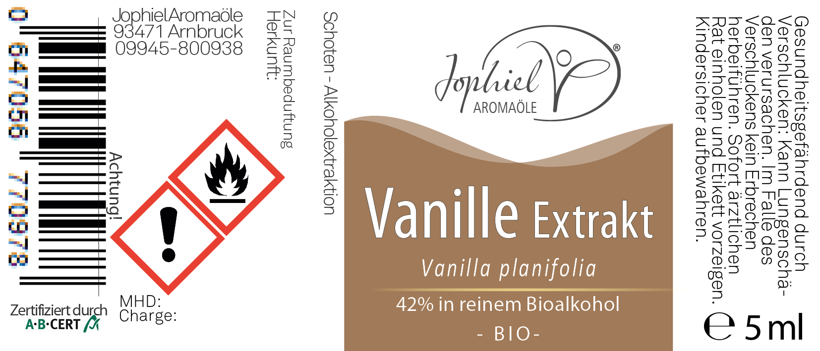 Produktinformationen "Vanille Extrakt 42%ig in Bioalkohol Bio 5 ml"