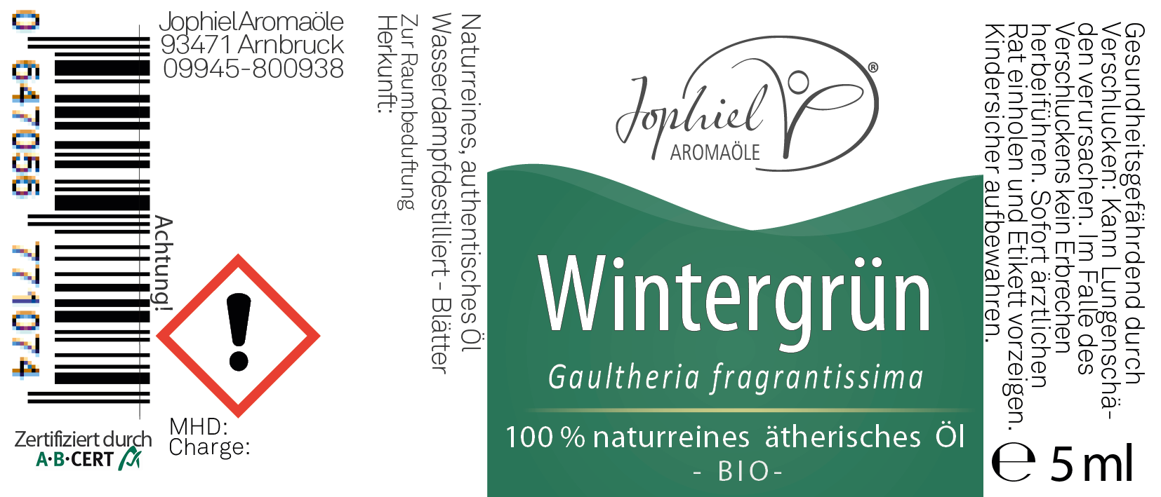 Produktinformationen "Wintergrün Öl Bio 5 ml"