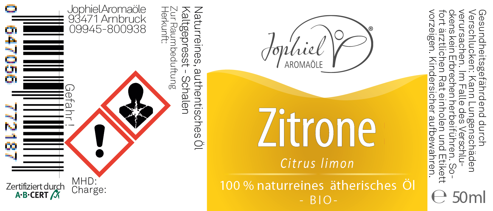 Produktinformationen "Zitrone Öl Bio 50 ml"